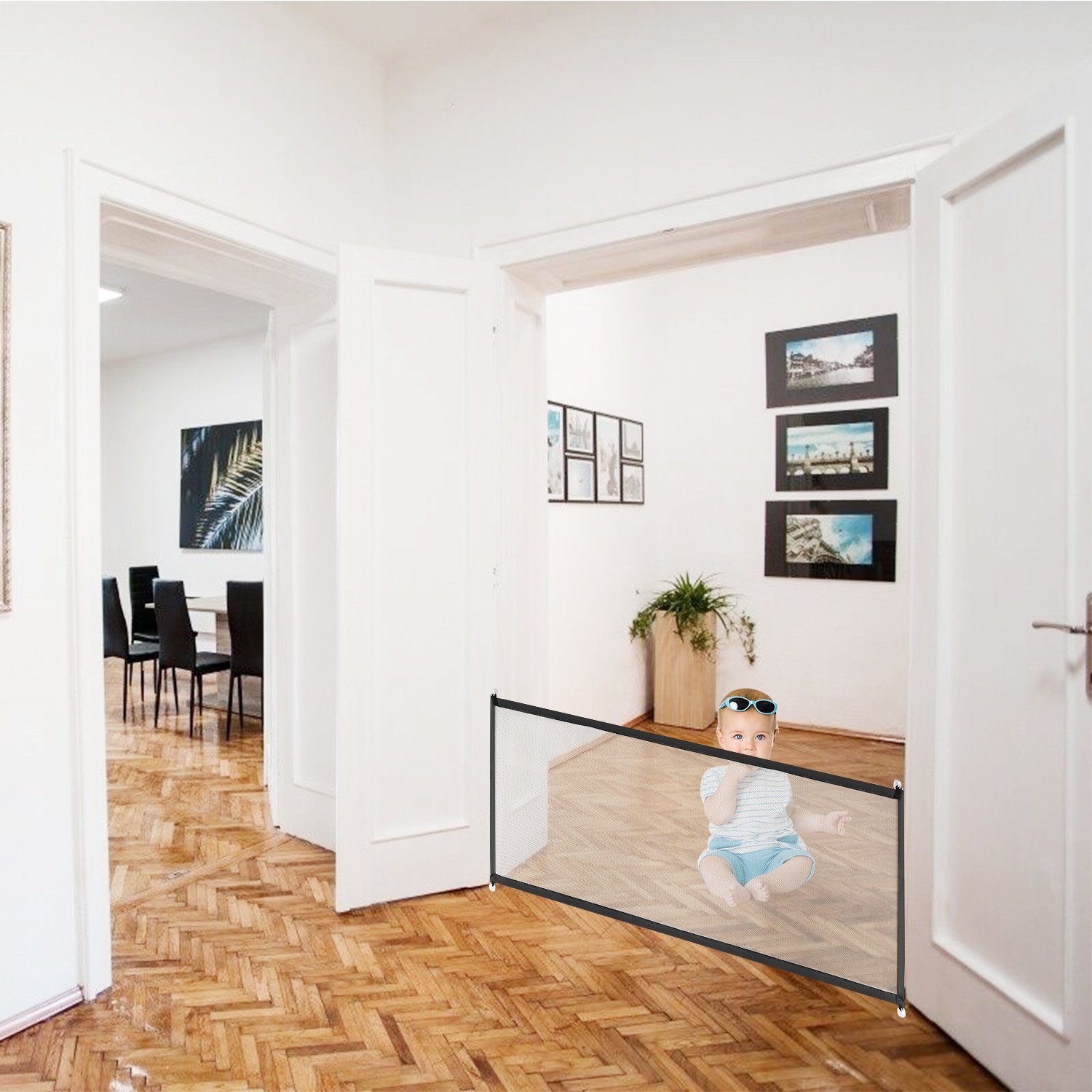 *Safety Gate*:This Retractable Gate works as both an infant gate and a small pet gate to keep them safe in this closure and let them enjoy their playing and rest in this environment.